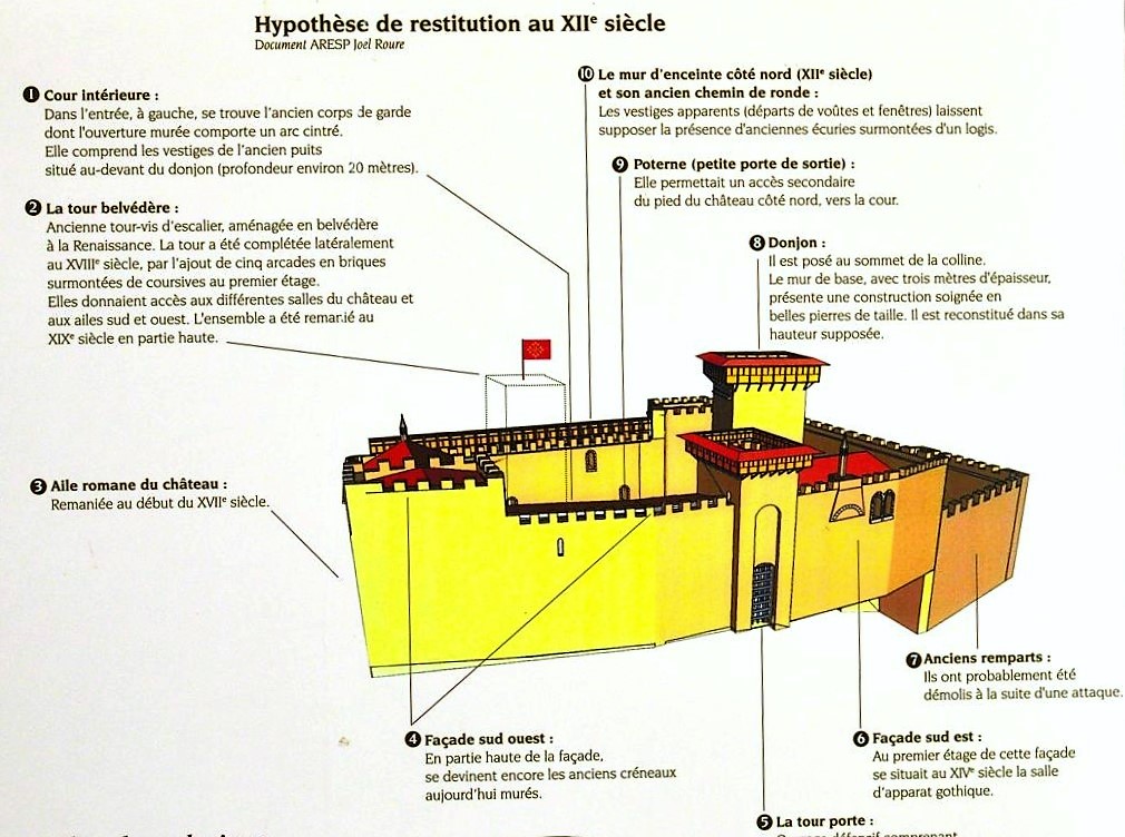 Ensuite nous sommes montés au château. Attesté au XIe siècle, il avait été établi au sommet d’une colline appelée Puèg Serguier (Podium Serigarium) sur une assiette rocheuse.