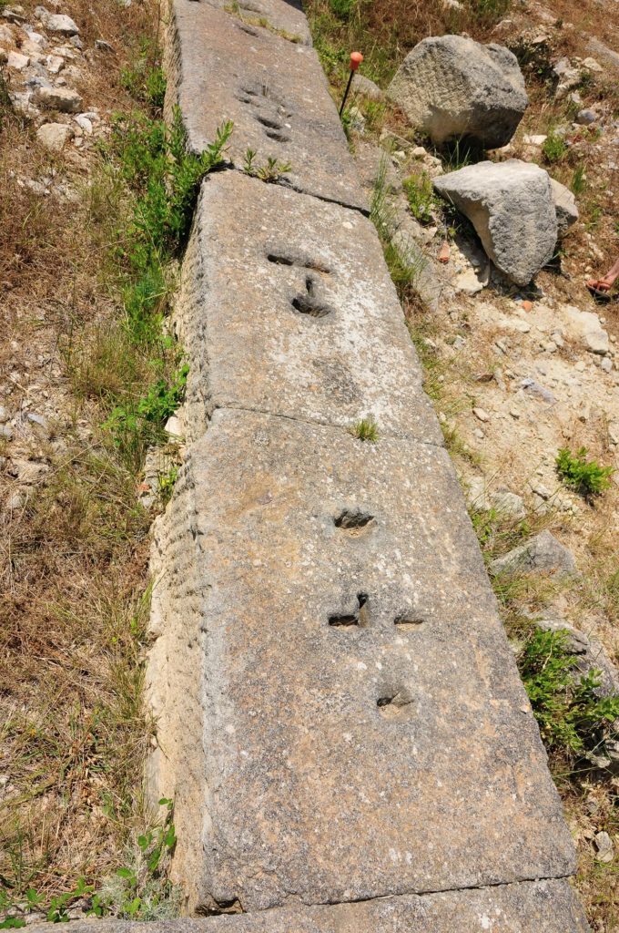 Les blocs en calcaires de grande dimension ont été levés à l’aide de louves dont les encoches demeurent très visibles.