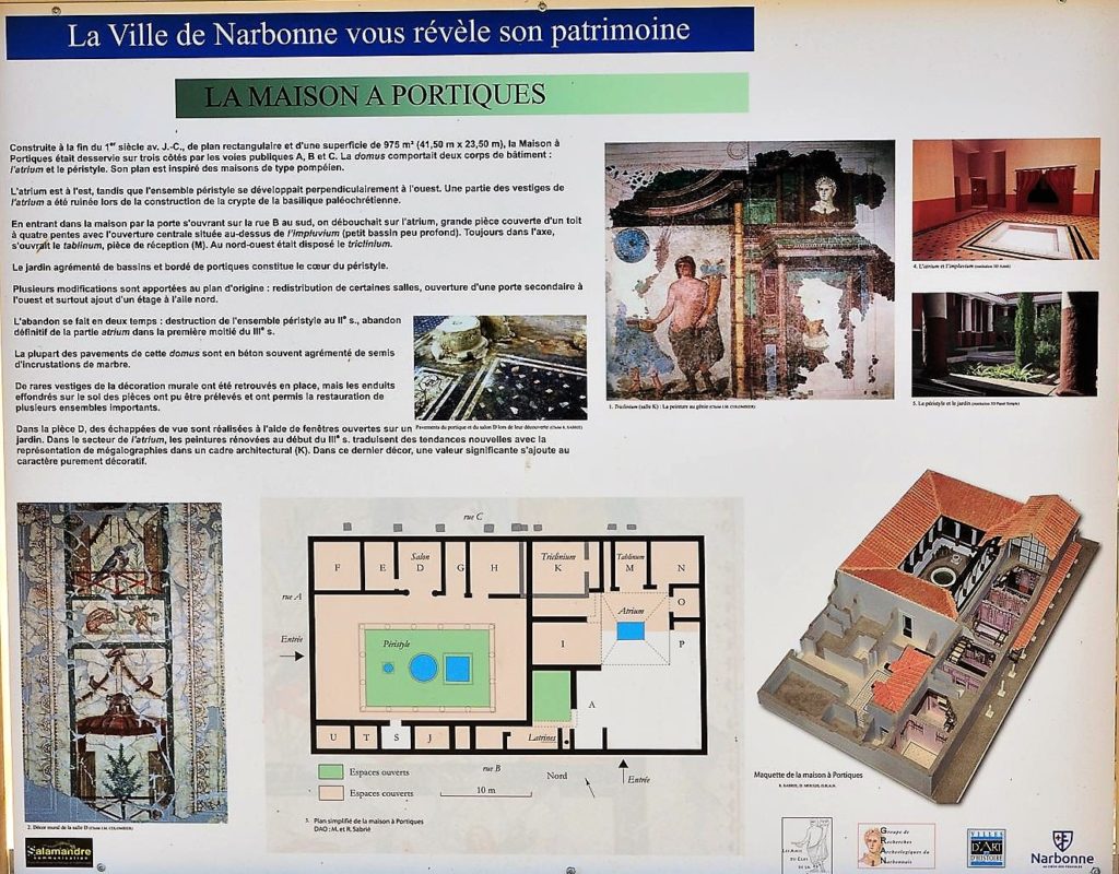 Construite peu de temps avant notre ère, elle s’articulait autour d’un péristyle où se trouvait le jardin agrémenté de bassins.