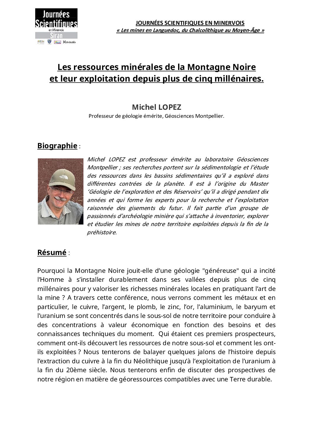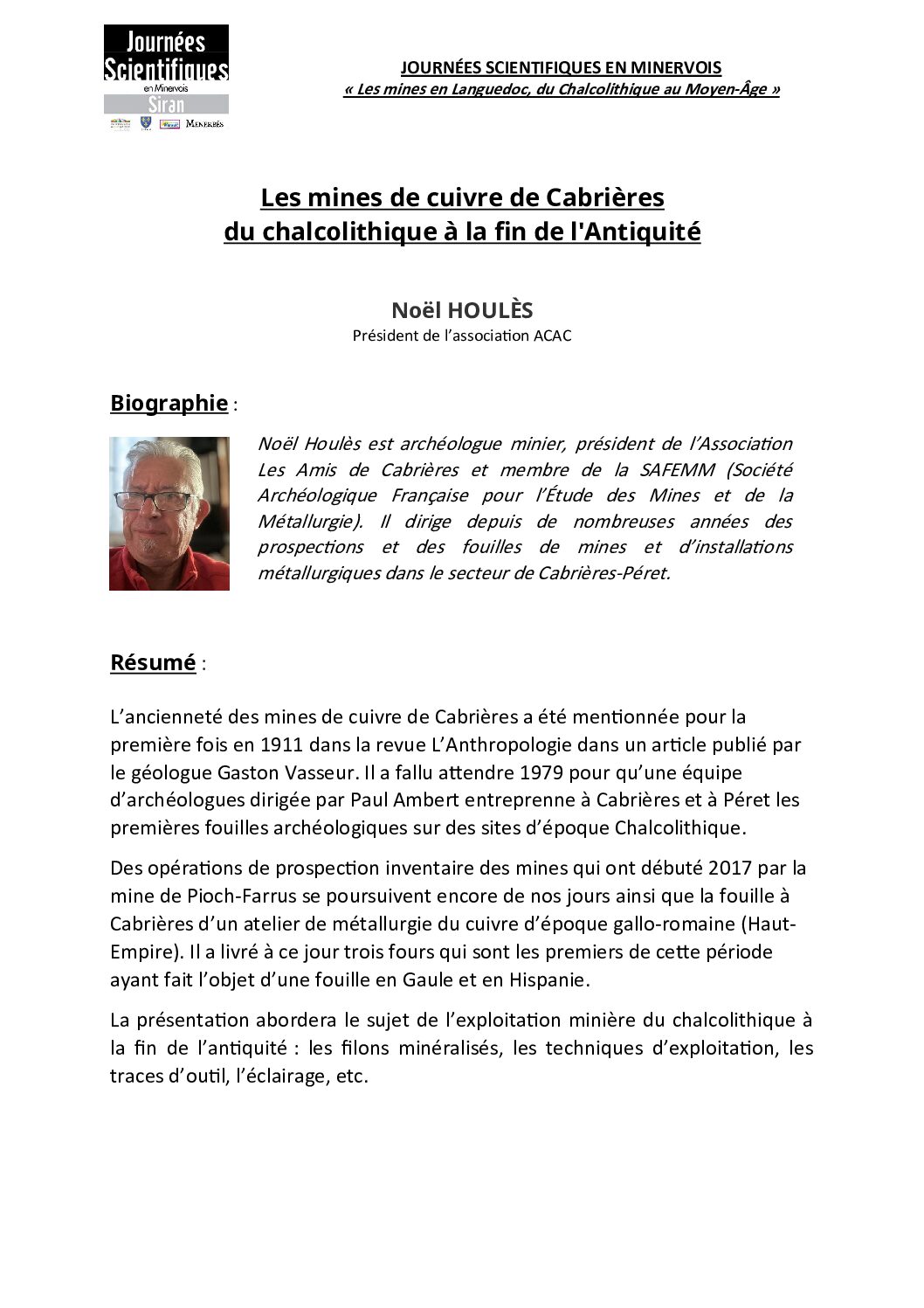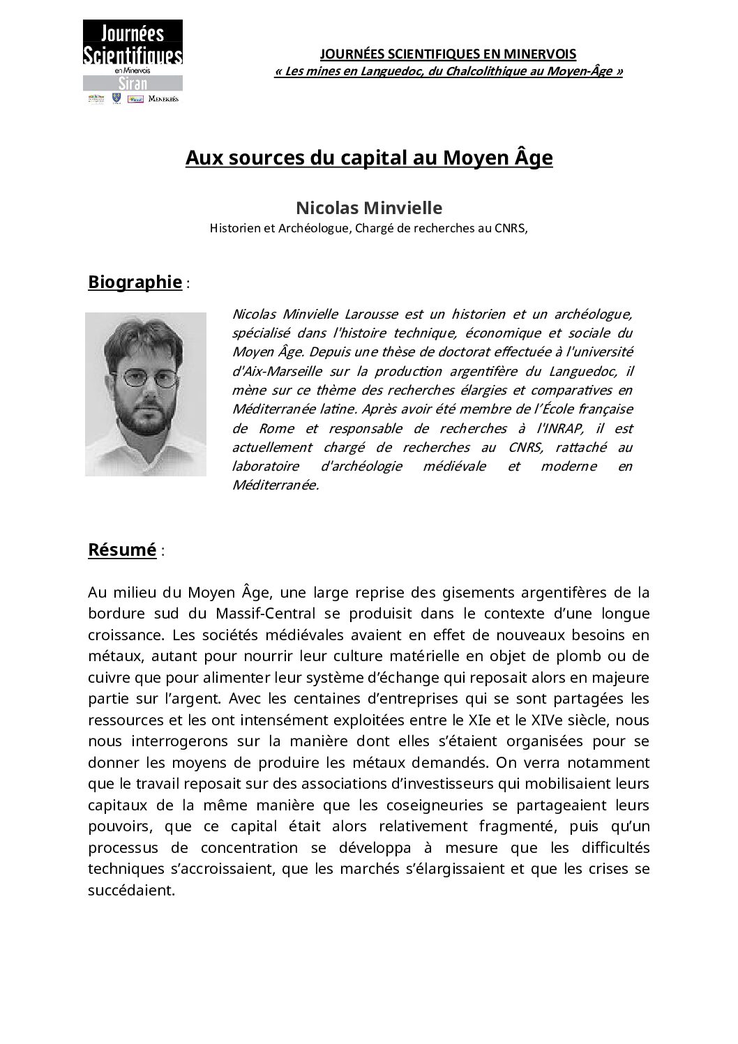 Le thème de ces journées sera cette année sur les mines et leur exploitation du Chalcolithique au Moyen-Âge dans le Languedoc. Activité qui de tout temps a fortement structuré la vie de ce territoire.