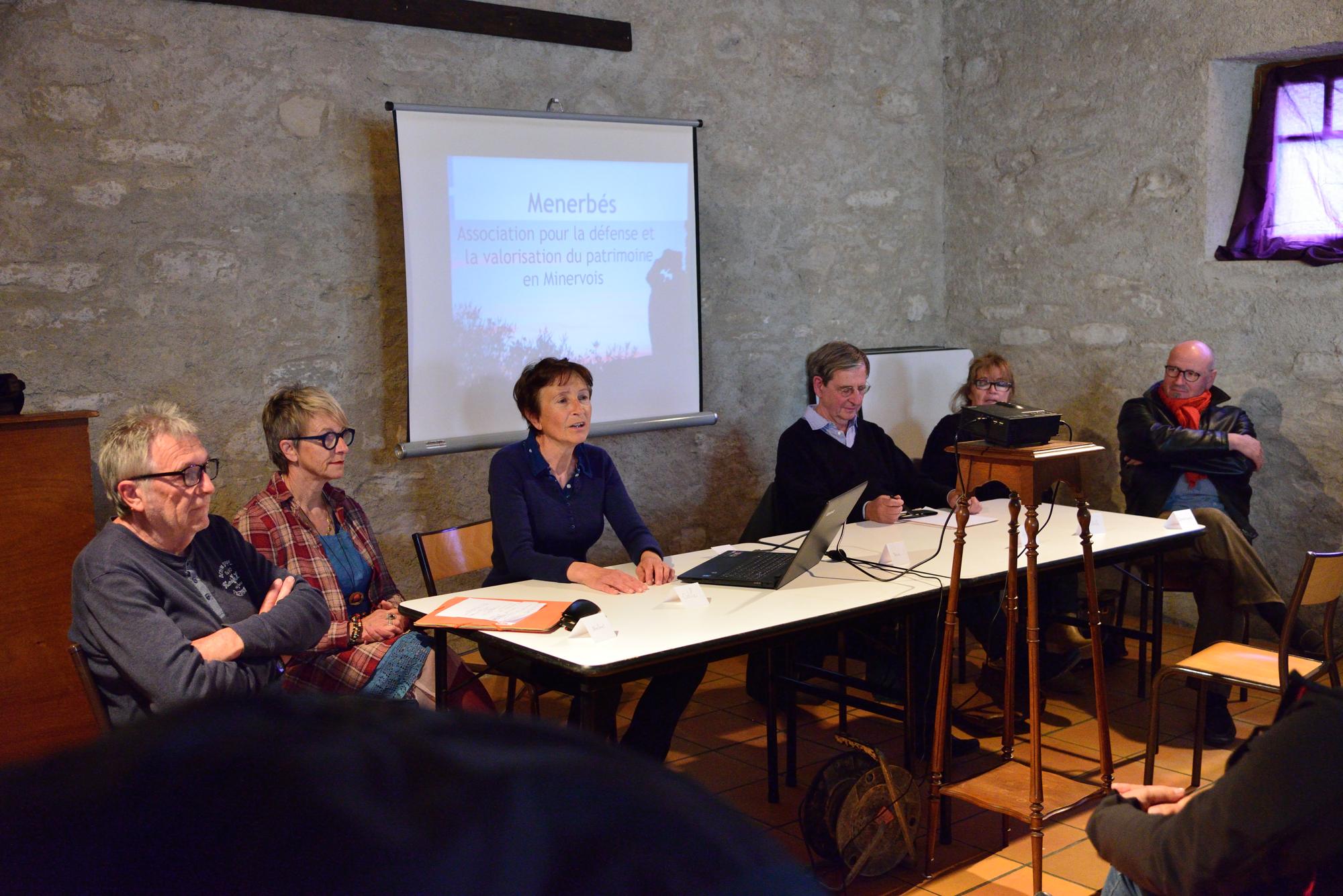 La première réunion publique de Menerbés s’est tenue à Minerve dans la salle du peuple vendredi 28 avril. Ce fut un franc succès, nous avons atteint une cinquantaine d’adhérents d’horizons très divers, élus et habitants de plusieurs villages du Minervois et des environs, archéologues et historiens amateurs et professionnels, population d’origine locale et résidents étrangers.