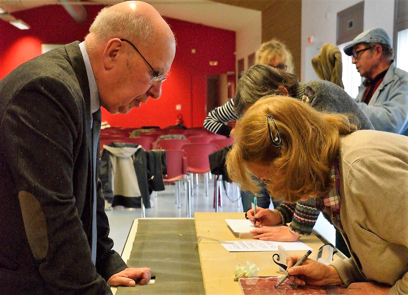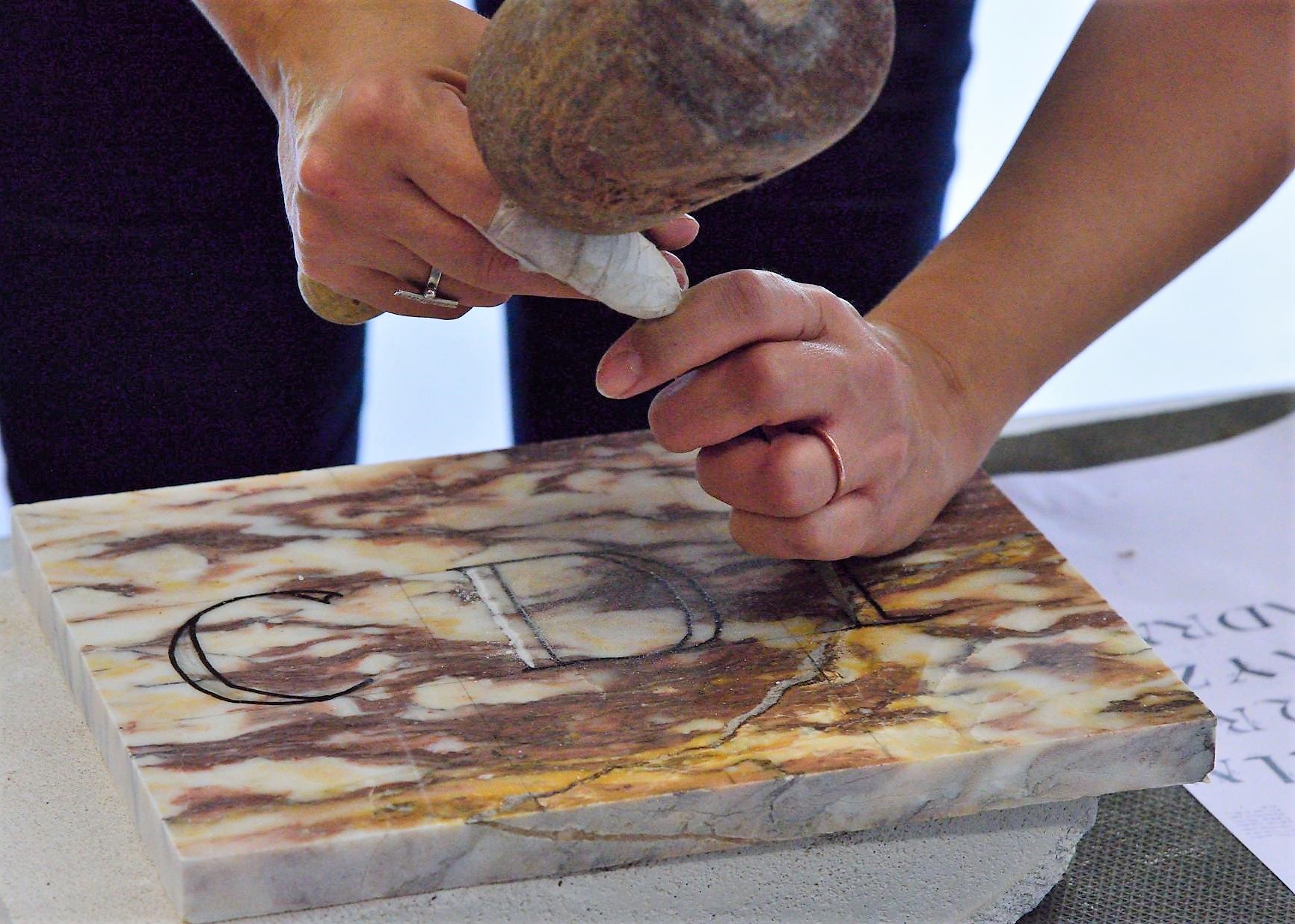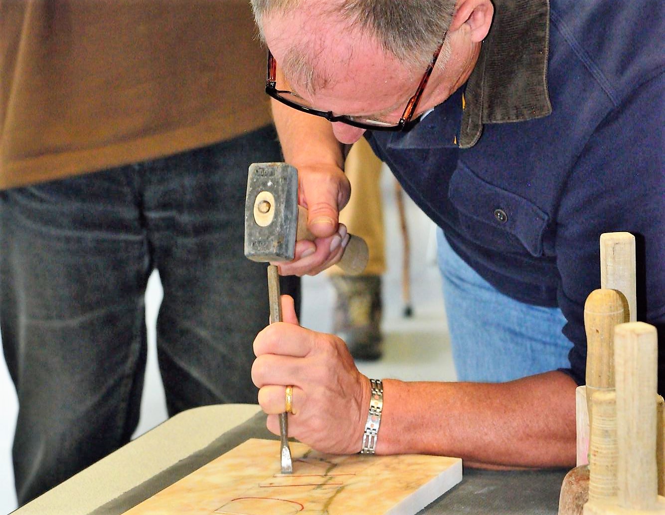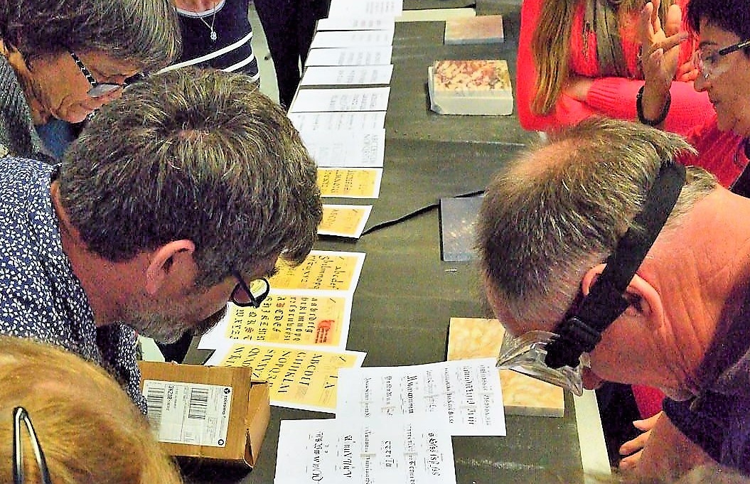 Dimanche après-midi : c’est l’heure tant attendue de l’atelier de gravure sur marbre animé par Thierry Grégor !
